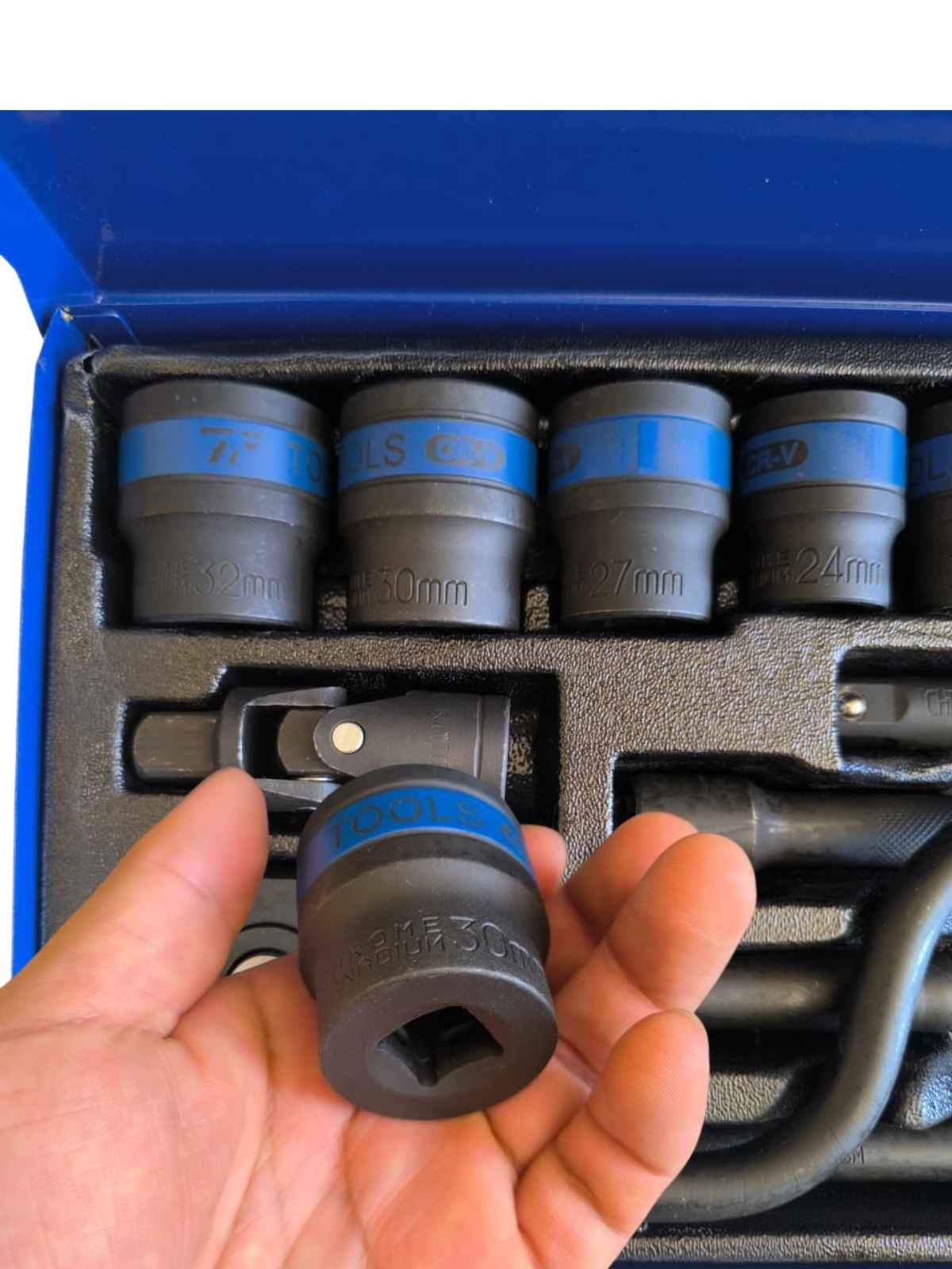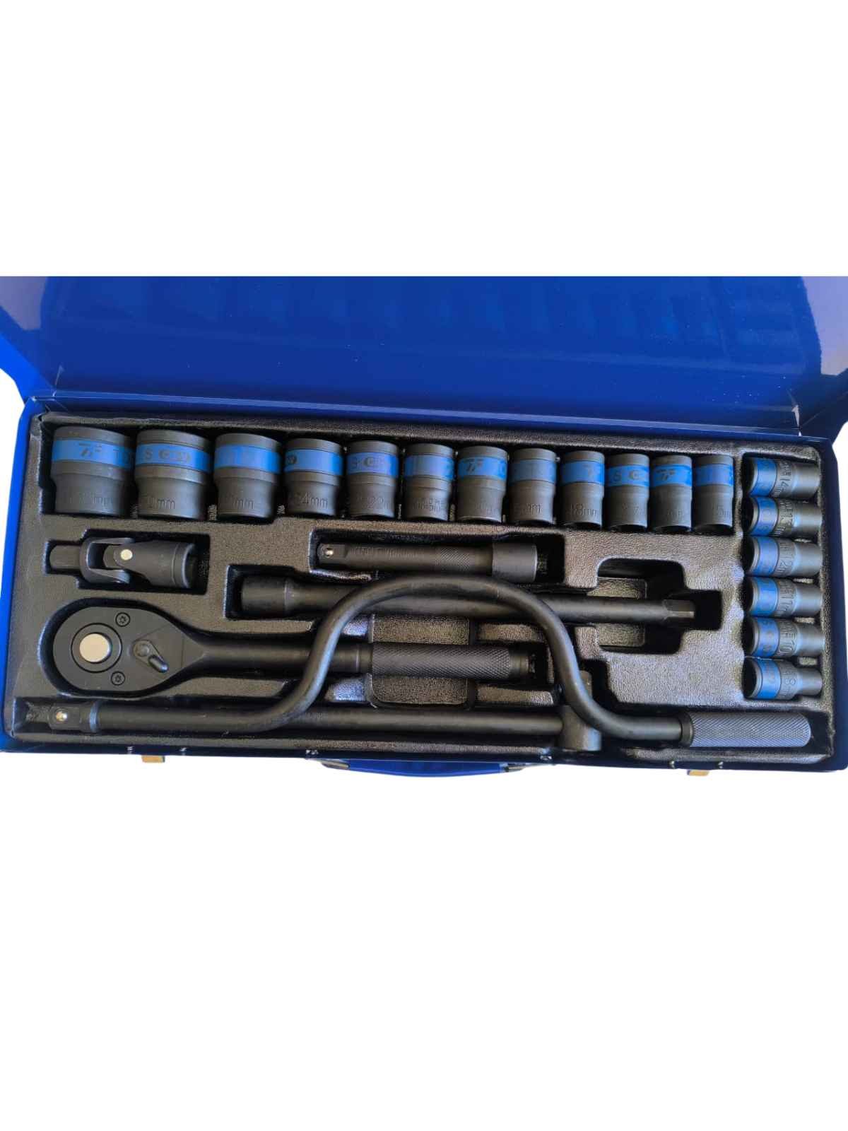Juego de dados de impacto de Cromo Vanadium de 1/2 , 24 piezas en un maletin de metal.